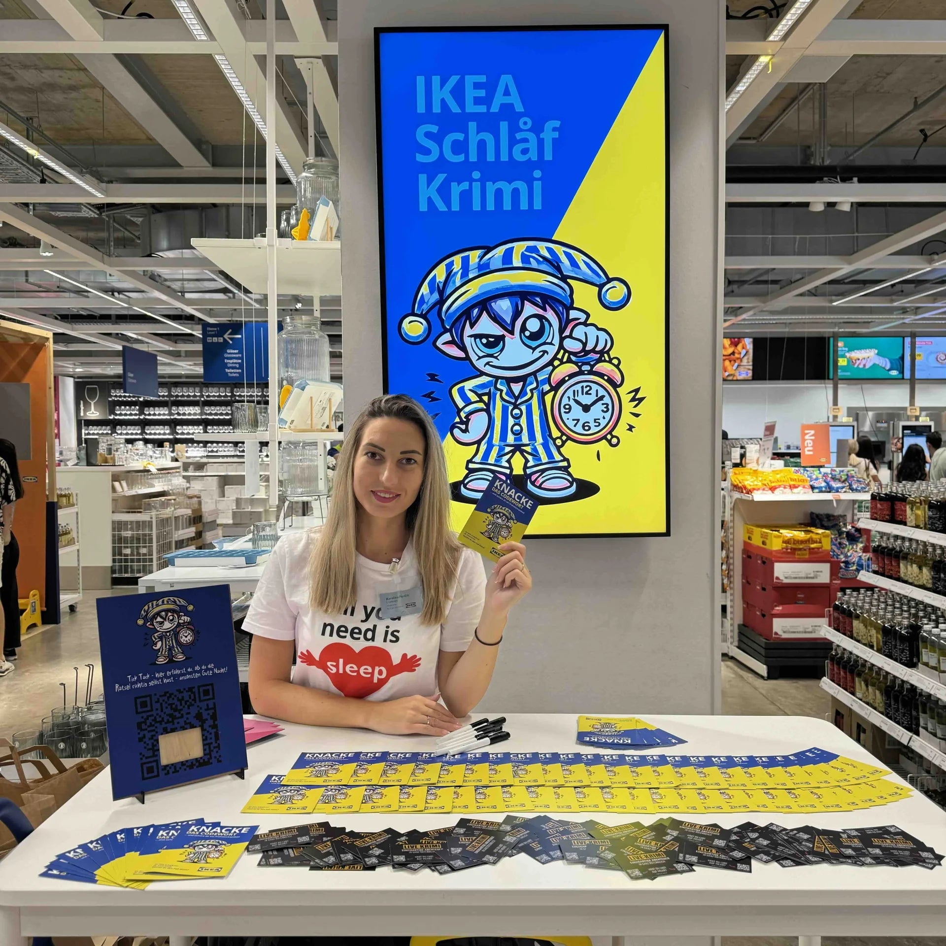 UnternehmenslösungenWir waren österreichweit beim IKEA-Festival im Einsatz. An insgesamt 8 Standorten, versuchten zahlreiche Rätsler:innen unseren Schlafkrimi zu lösen.