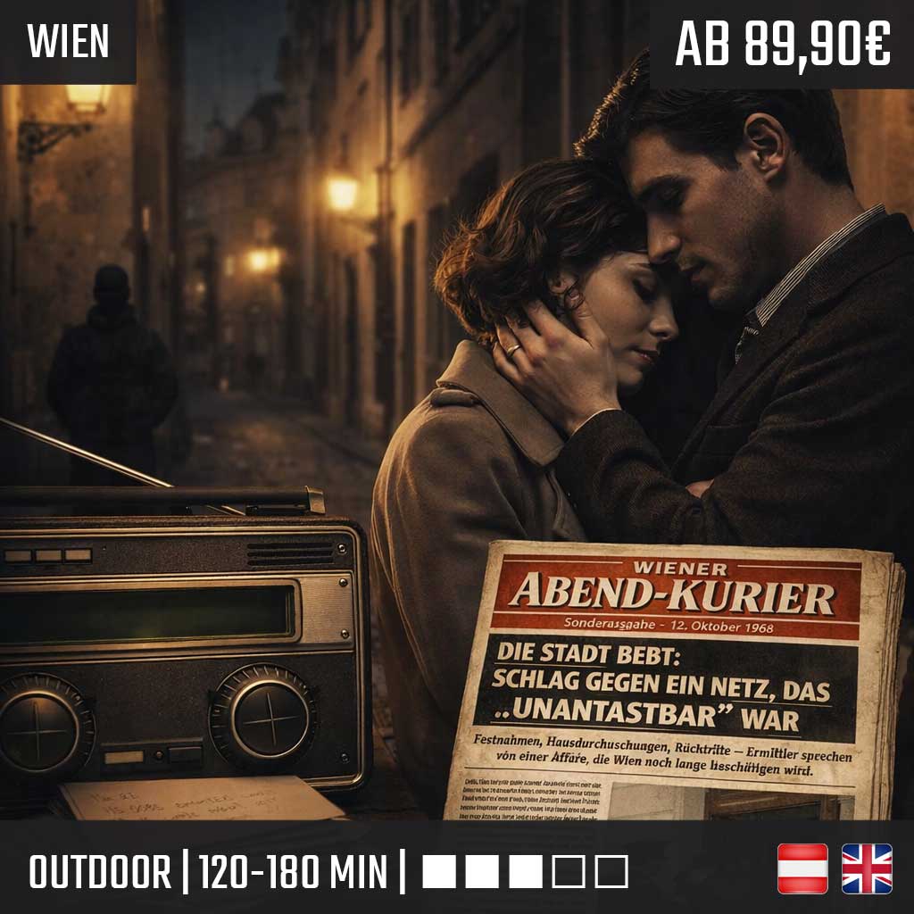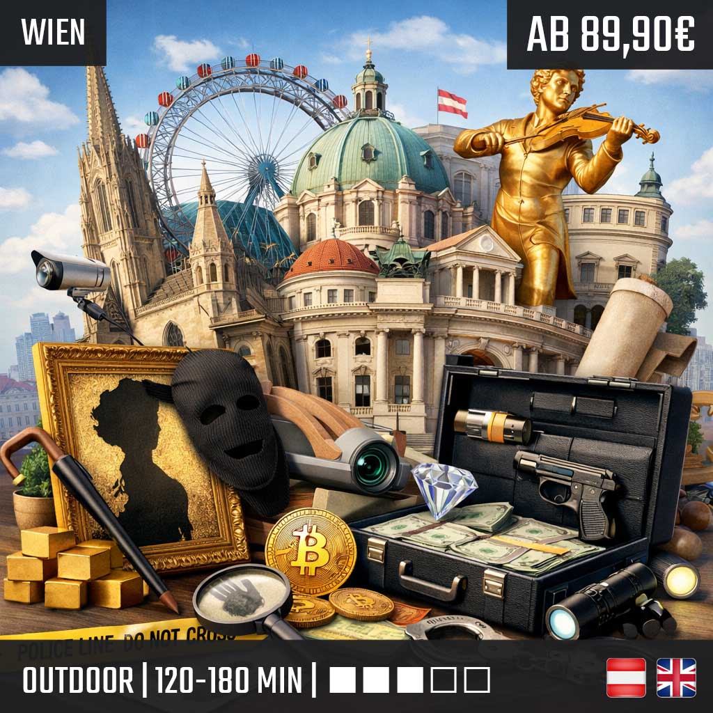 MEHR INFOS & TICKETSDer größte Kunstraub in der Geschichte Wiens – nicht mit Gewalt, sondern mit Geduld und erschreckender Präzision. Die Meisterwerke wurden am Schwarzmarkt verkauft und das Vermögen landete als Kryptogeld auf einem unscheinbaren USB-Stick. Das Passwort? Ein einzigartiges Puzzle, gespickt mit mysteriösen Botschaften und Rätseln, die an die bekanntesten Orte der Stadt führen - und euch mitten im Trubel vor große Probleme stellen werden.